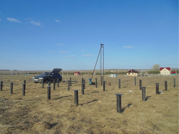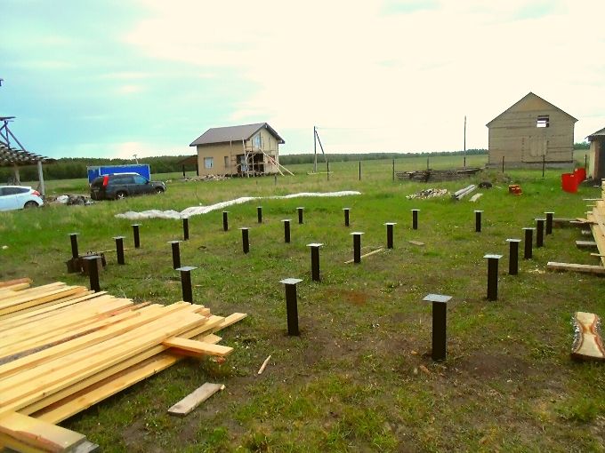 Мишкино - фундамент под дом 6х8 м. Дом из бруса 23 свай диаметр 108 мм и 4 сваи диаметром 89 мм под веранду