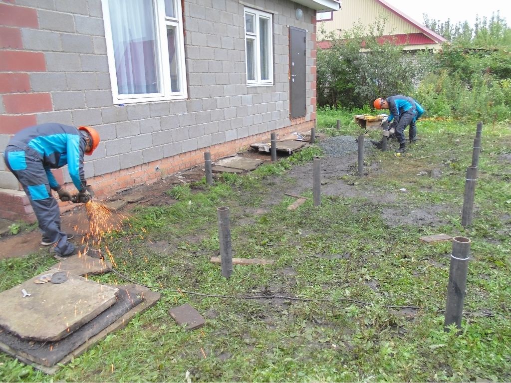 Несущая способность одной сваи диаметром 76 мм составляет 1,5 т. Такие конструкции применяются при строительстве заборов, гаражей, беседок и других сооружений небольшого веса.